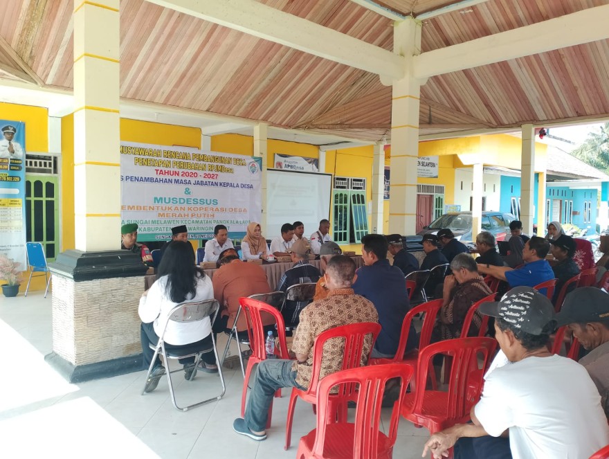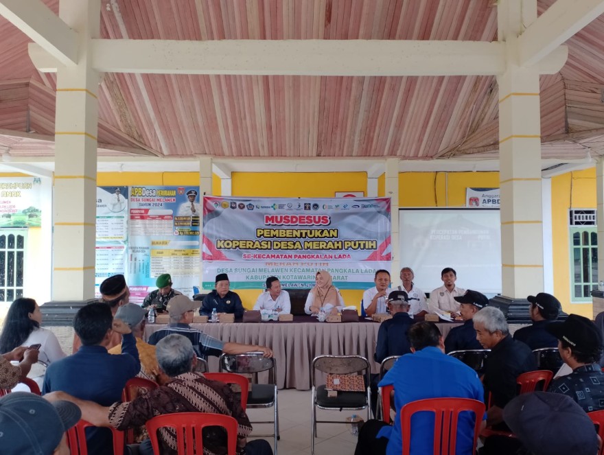 Musyawarah Desa Khusus Pembentukan Koperasi Desa Merah Putih di Desa Sungai Melawen dihadiri Oleh Bapak Muliadi dari Dinas Perindagkop Kobar dan Juga Camat Pangkalan lada.