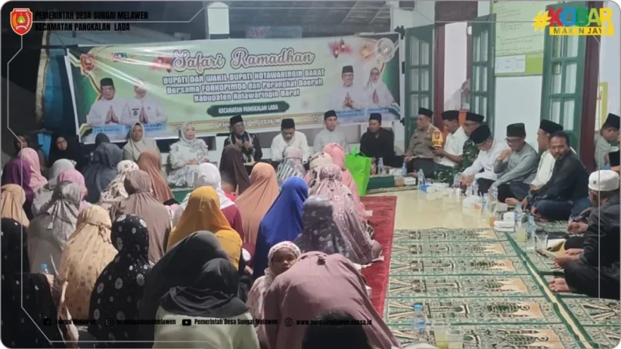 Bupati dan Wakil Bupati Kotawaringin Barat, Forkompinda dan Kepala Perangkat Daerah Se Kabupaten Kotawaringin Barat melaksanakan Safari Ramadhan Tahun 1447 H dengan Sholat Terawih bersama masyarakat di Masjid Miftahul Janah Desa Sungai Melawen..